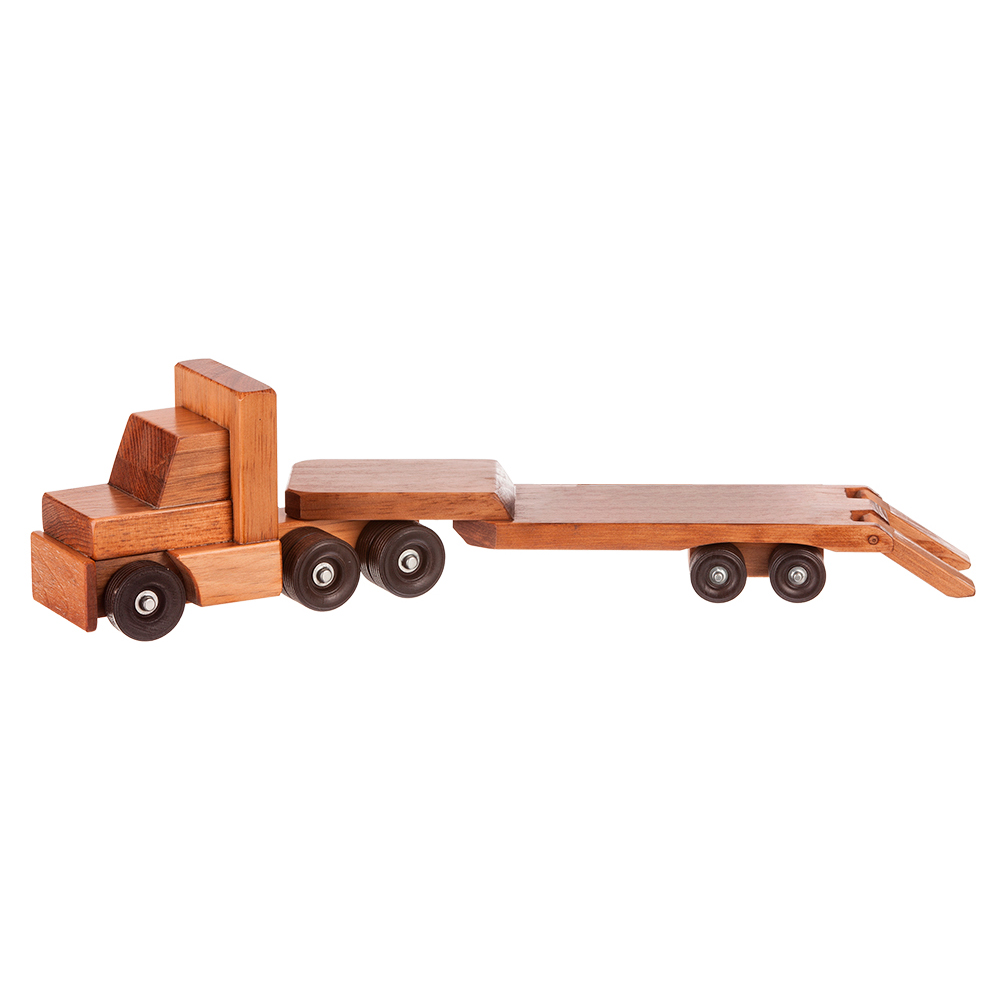 Oversized load! Little ones will delight in loading up this wooden low boy trailer. Working wheels and rear loading ramps make it easy to get to the next destination.